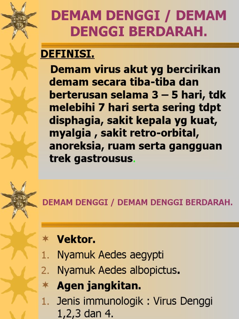 Dengue hemorrhagic fever is an infectious disease resulting spectrum of clinical manifestations that vary from the lightest dengue fever hemorrhagic fever and dengue fever. Denggi klasik demam denggi berdarah dan sindrom kejutan denggi. Safar berkata lima kes kematian akibat demam denggi turut direkodkan di Sabah setakat ini melibatkan tiga kes di Sandakan manakala masing-masing satu di Papar dan.